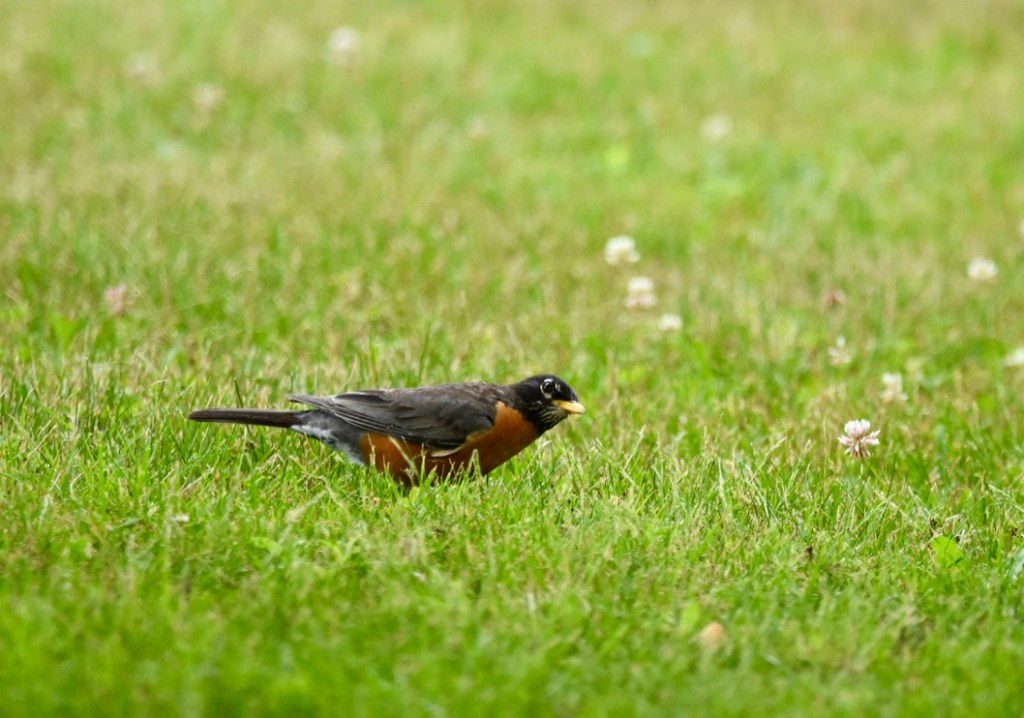 Yesterday morning, as I wandered by the riverside park, I saw a robin hopping along the ground. I lingered and watched for a while. (One of the joys of summer is having time to linger and time to notice.) Every so often it stopped and cocked its head toward the ground. It seemed to be listening! Each time it would turn its head, pause, then straighten up, peck at the ground or move along. It was fascinating!