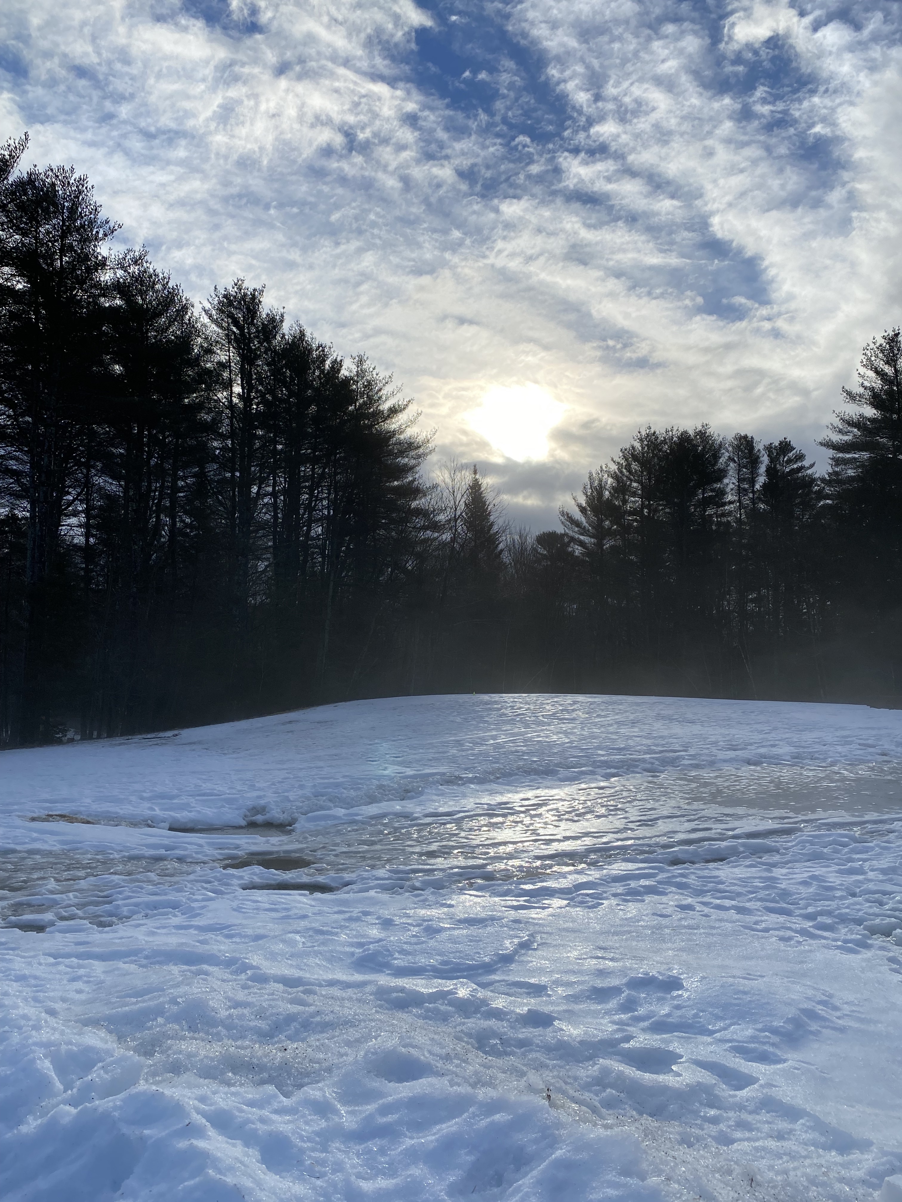 Mornings this week have been especially gorgeous. I have a beautiful commute through rolling rural hills and over a river to get to school. With overnight snowfalls and perfectly timed sunrises, I’ve been treated to one spectacle after another– sun-lit birches like candelabra rising from the snow, a river obscured by an incandescent mass of glowing fog, dried flower heads gathering snow like blossoms. My classroom view isn’t bad either.