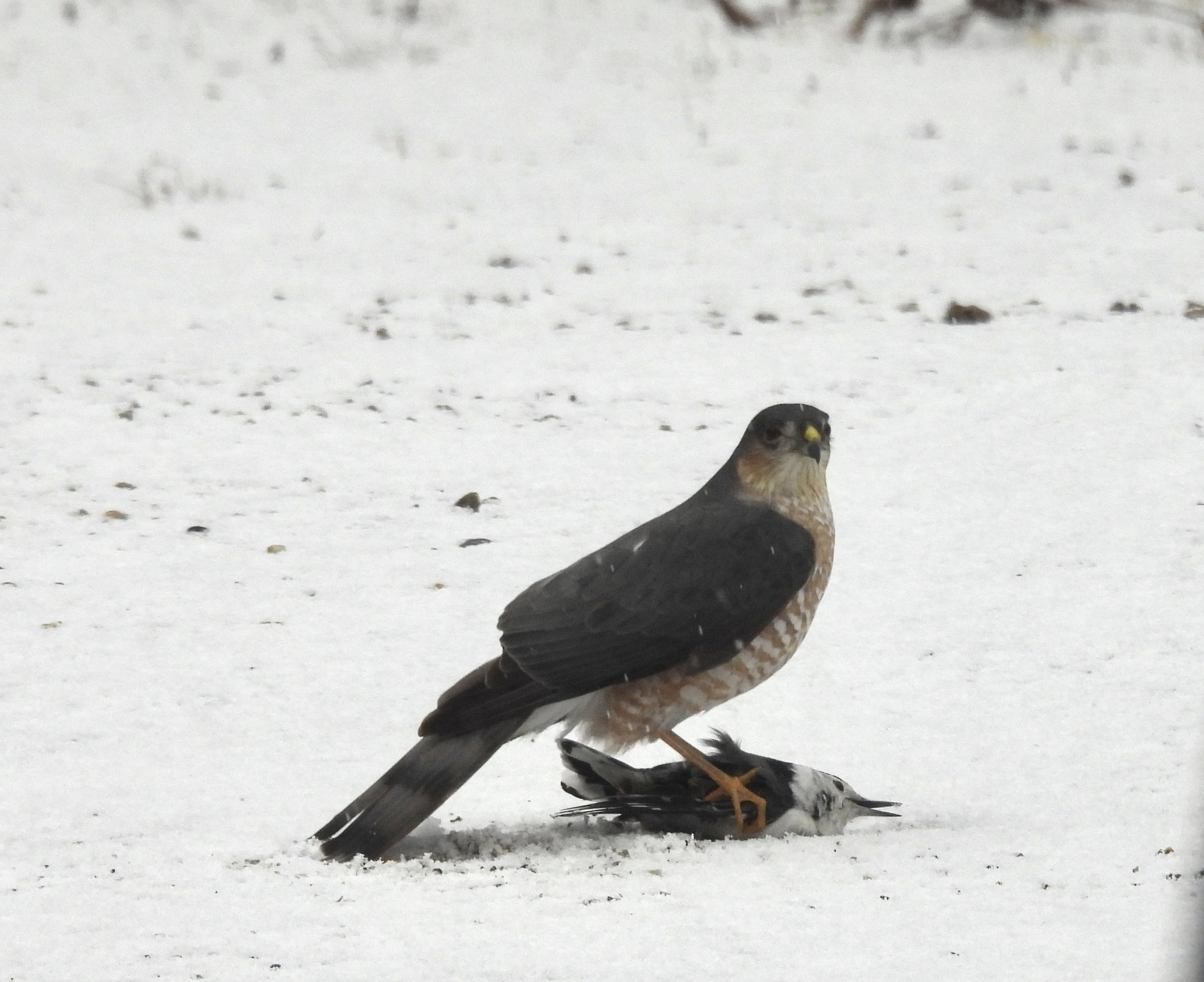 Wow. Even through a window, that was quite a shot. I really enjoyed the drama of this camera struggle. I hadn’t scrolled down, so I was actually in suspense, wondering if you’d get the camera working in time. Batteries and USB plugs always seem to go in wrong the first time. Congrats to the hawk. Condolences to the nuthatch and his family. Nature is harsh sometimes. You had a much better view than I got with my fox encounter, though I did get to see the actual capture.
