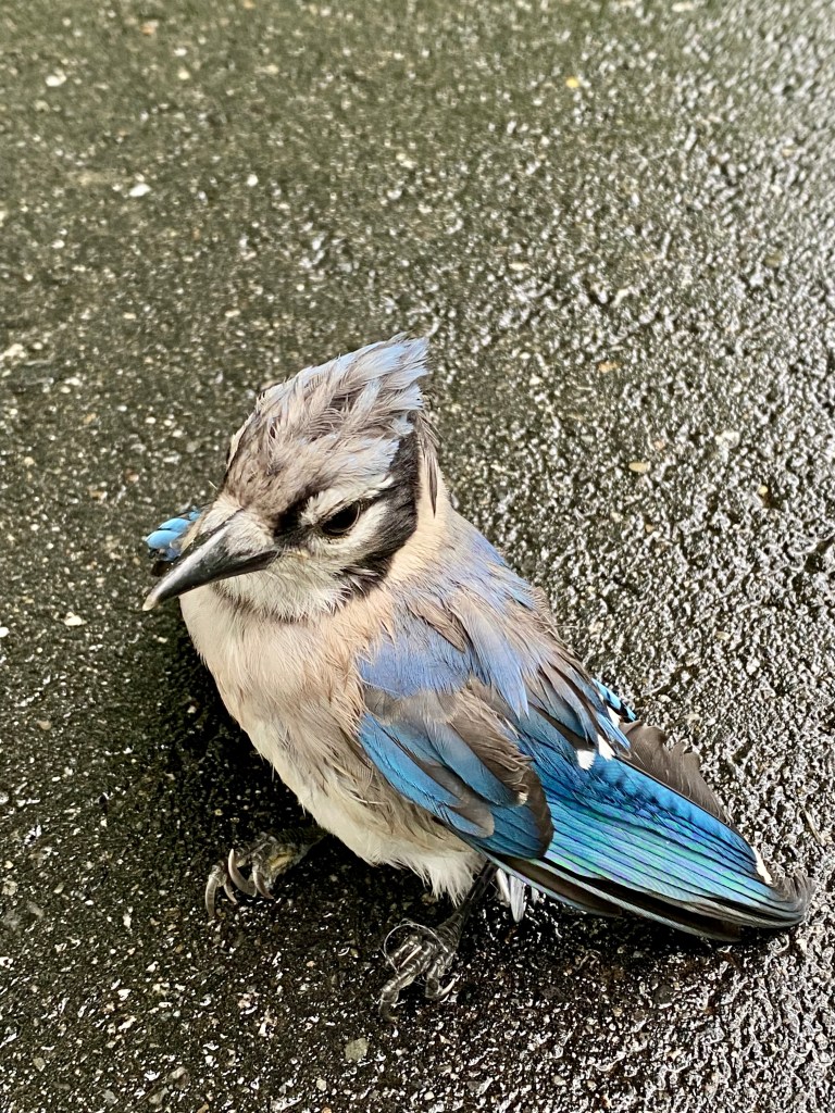 I picked up my pace. As I neared the object, I could see that it was most definitely a bird. In fact, it was a blue jay.