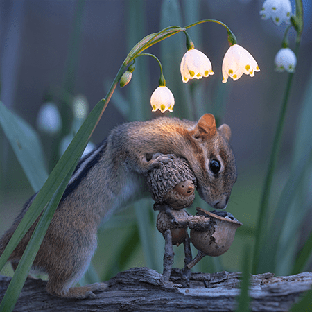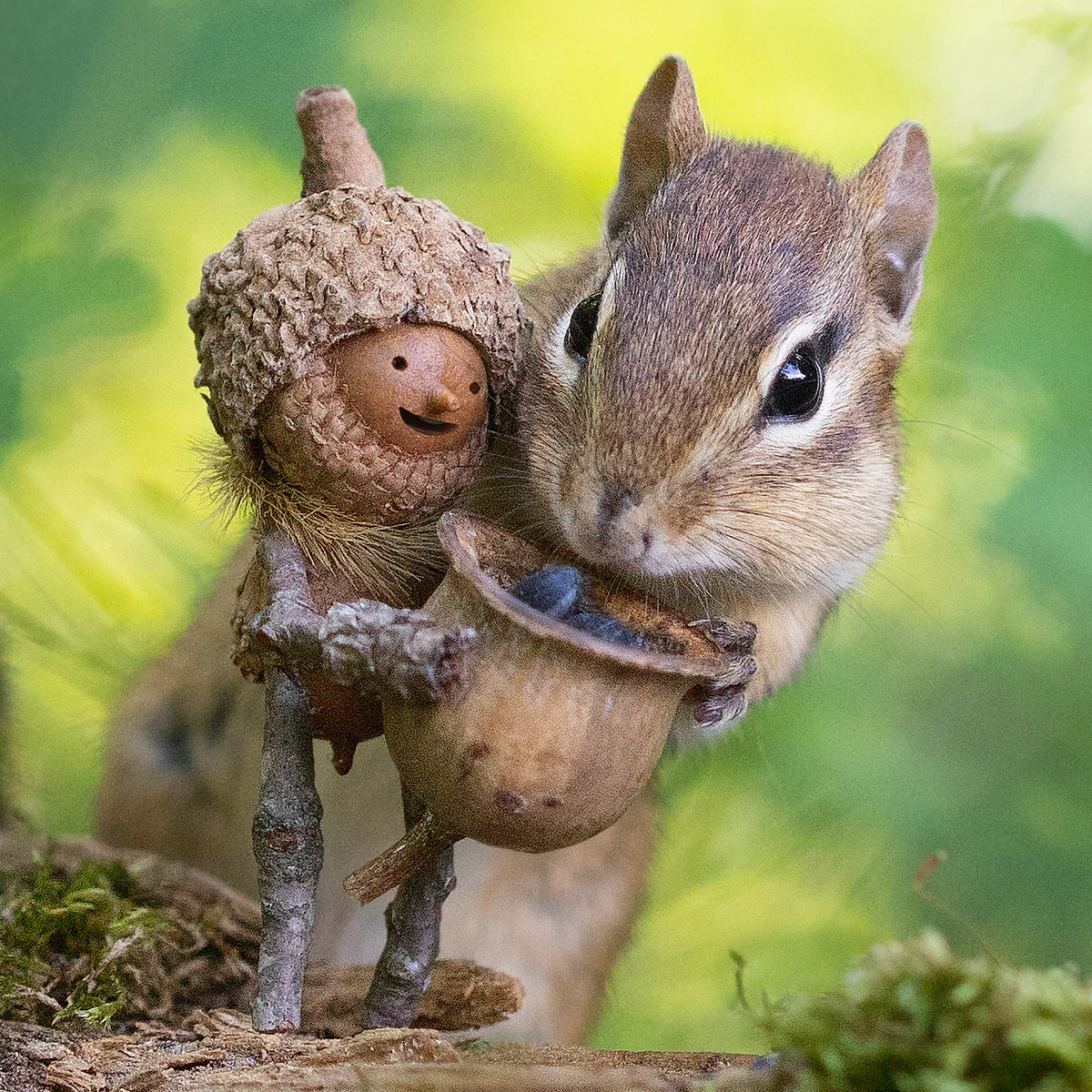 As a bonus, I have to include a couple of photos from David Bird, an amazing photographer who has photographed wildlife, including chipmunks, with his own created “Becorns”.
