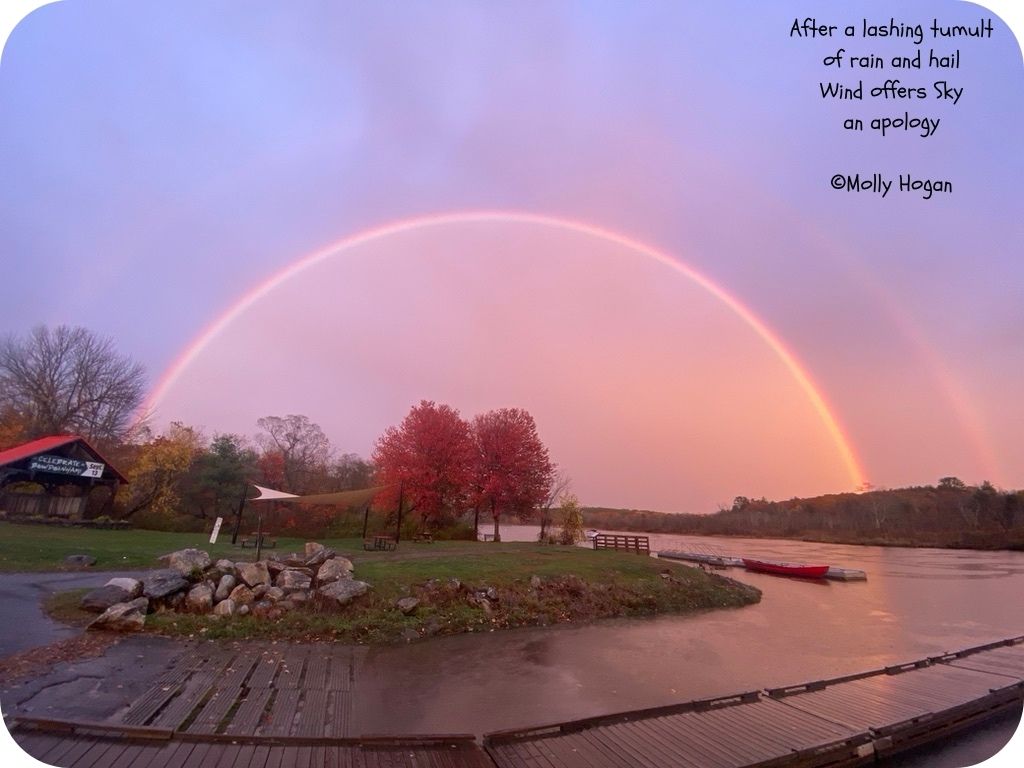 It’s day 41 of the school year (Who’s counting? lol), and I’m still adjusting to the back-in-school pace. Taking pictures helps me escape from the whirlwind, and calms and centers me. Mostly I’m photographing on the weekends, but sometimes, like with the double rainbow, a photo moment steals into the work week. Sometimes, in a lovely added benefit, the photos themselves serve as a springboard into poems. The first one was inspired by Georgia Heard’s prompt, “If the wind painted the sky, what colors would it choose?”