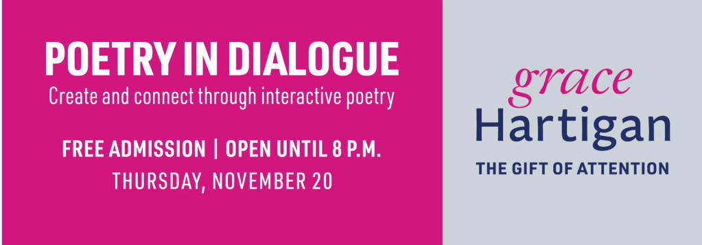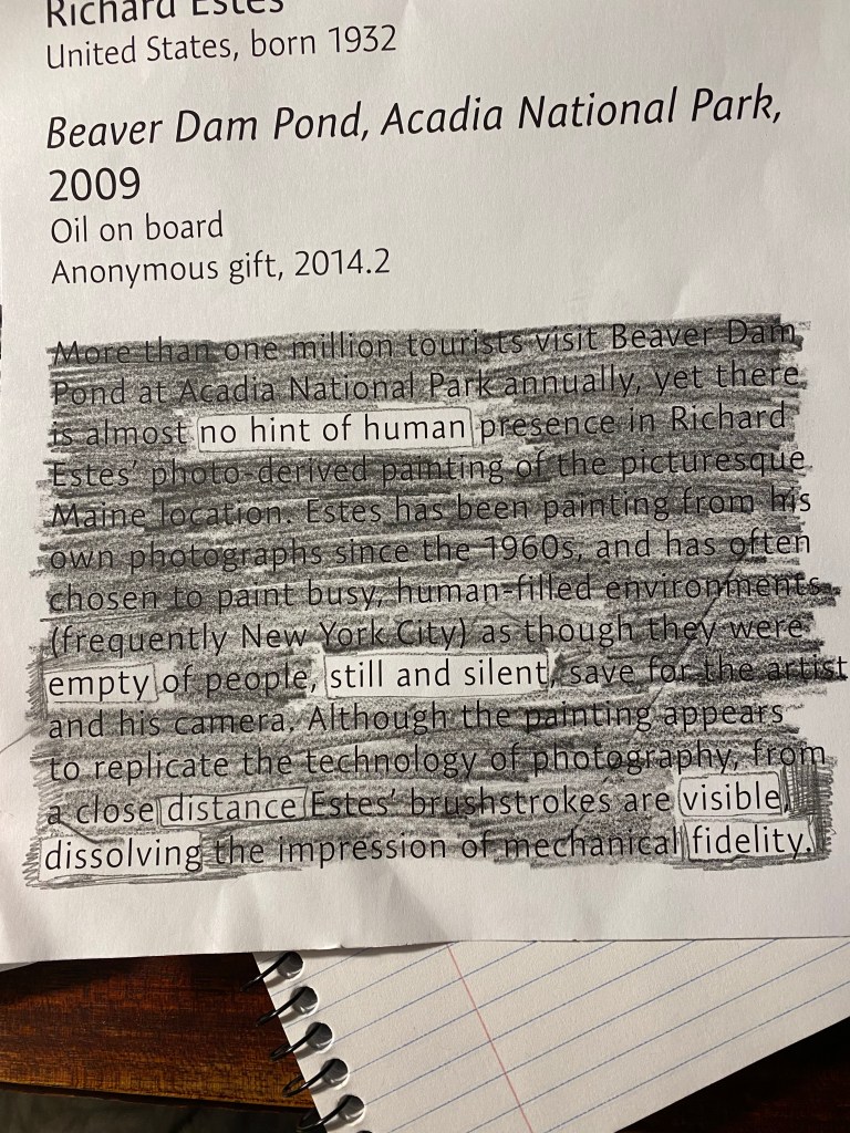 Trying to be proactive, I’ve been adding things to my weeknight schedule, deliberately creating some time out of the vortex of school. I noticed an upcoming event at the Portland Museum of Art and planned to attend, registering for a free one hour ekphrastic poetry class.