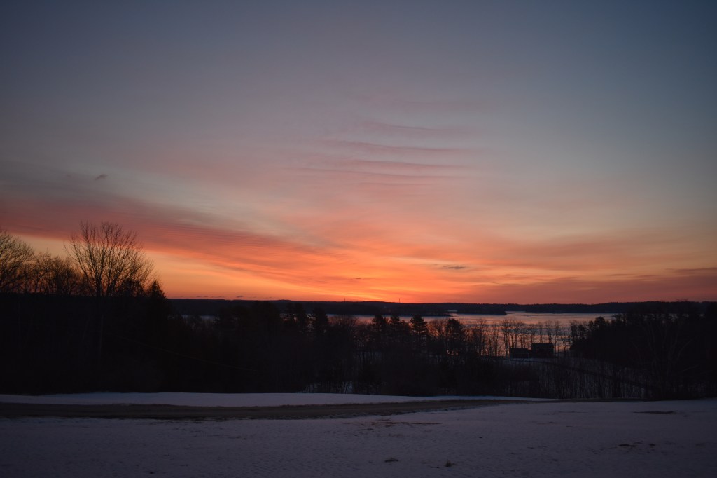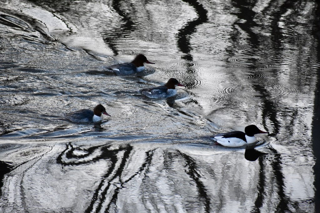 I didn’t stay too long. Just long enough to watch a sherbet sky brighten over the bay. To watch mergansers fish for their breakfast. To watch the tree reflections ripple and whirl with the incoming tide. To let go.