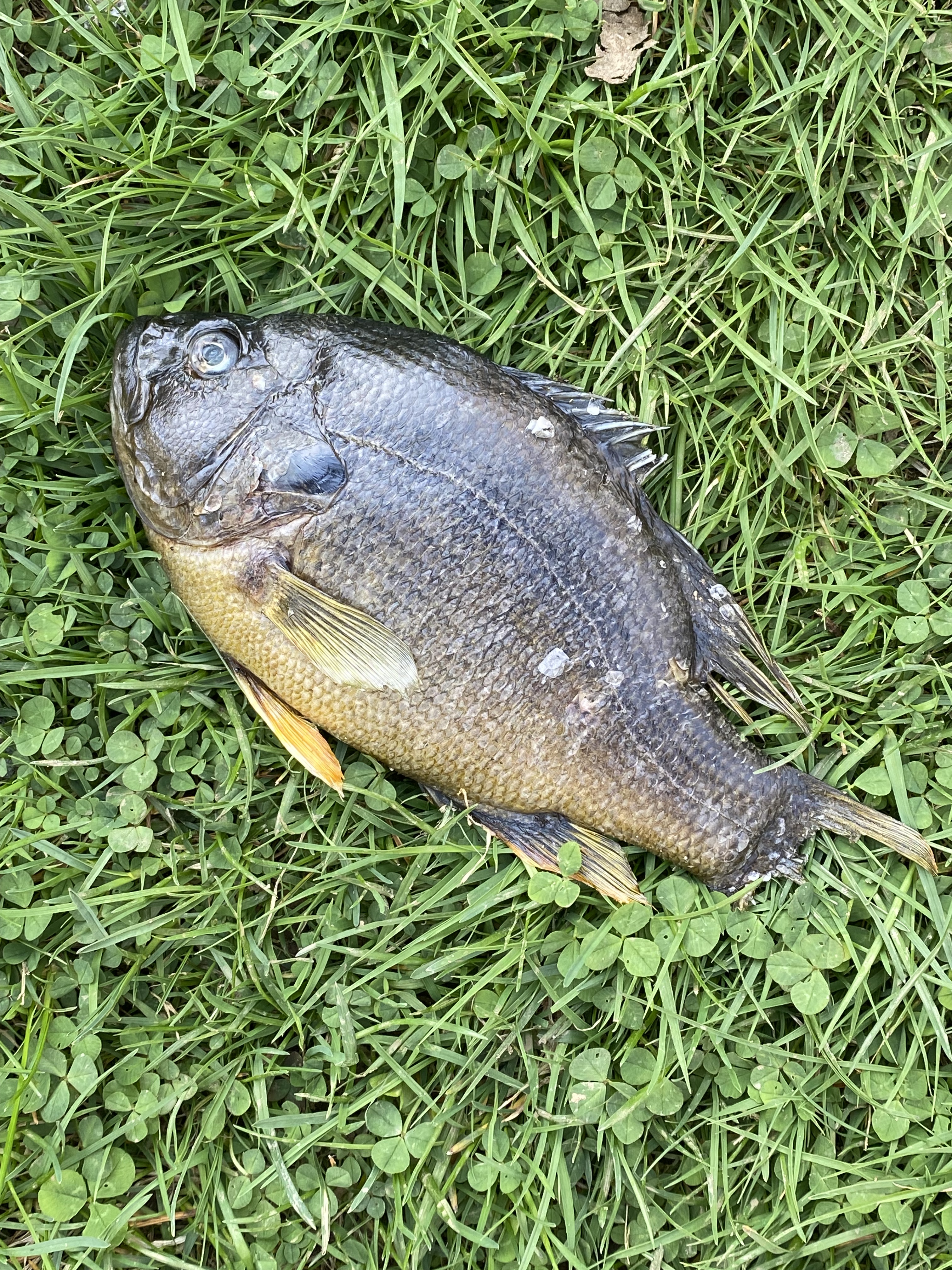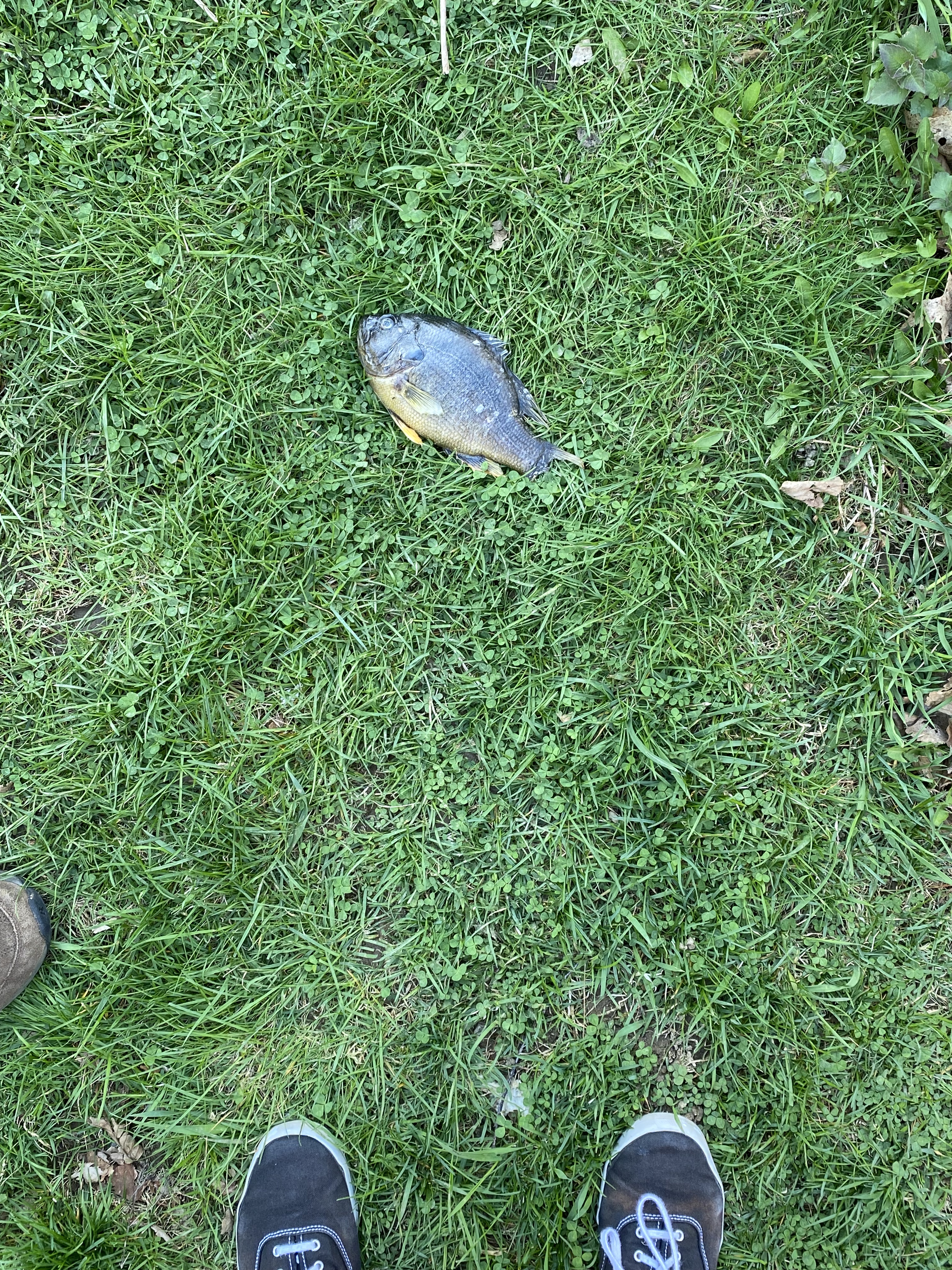 “It’s pretty big. I think it’s a blue gill. How in the heck did it get here?”