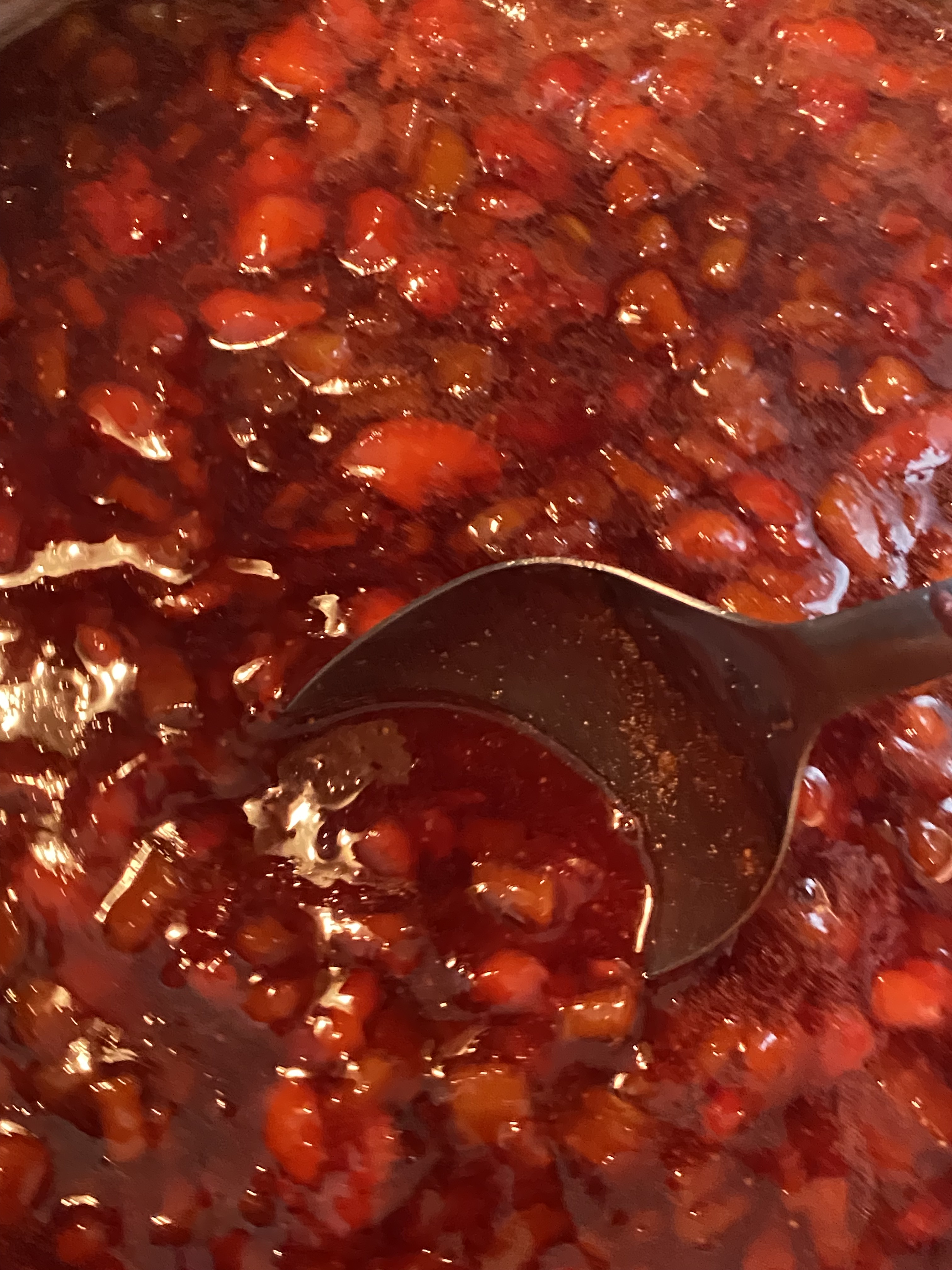 Berry picking is a treasure hunt. This year it felt especially so, as the berries were smaller and fewer in quantity. Every so often I stumbled upon a patch of glowing red berries, but more often I was brushing aside damp leaves, searching for hidden ones. Sometimes I was rewarded. Sometimes not. But bit by bit, my green cardboard quart baskets filled up. Eventually I was finished picking and I headed home to make jam.