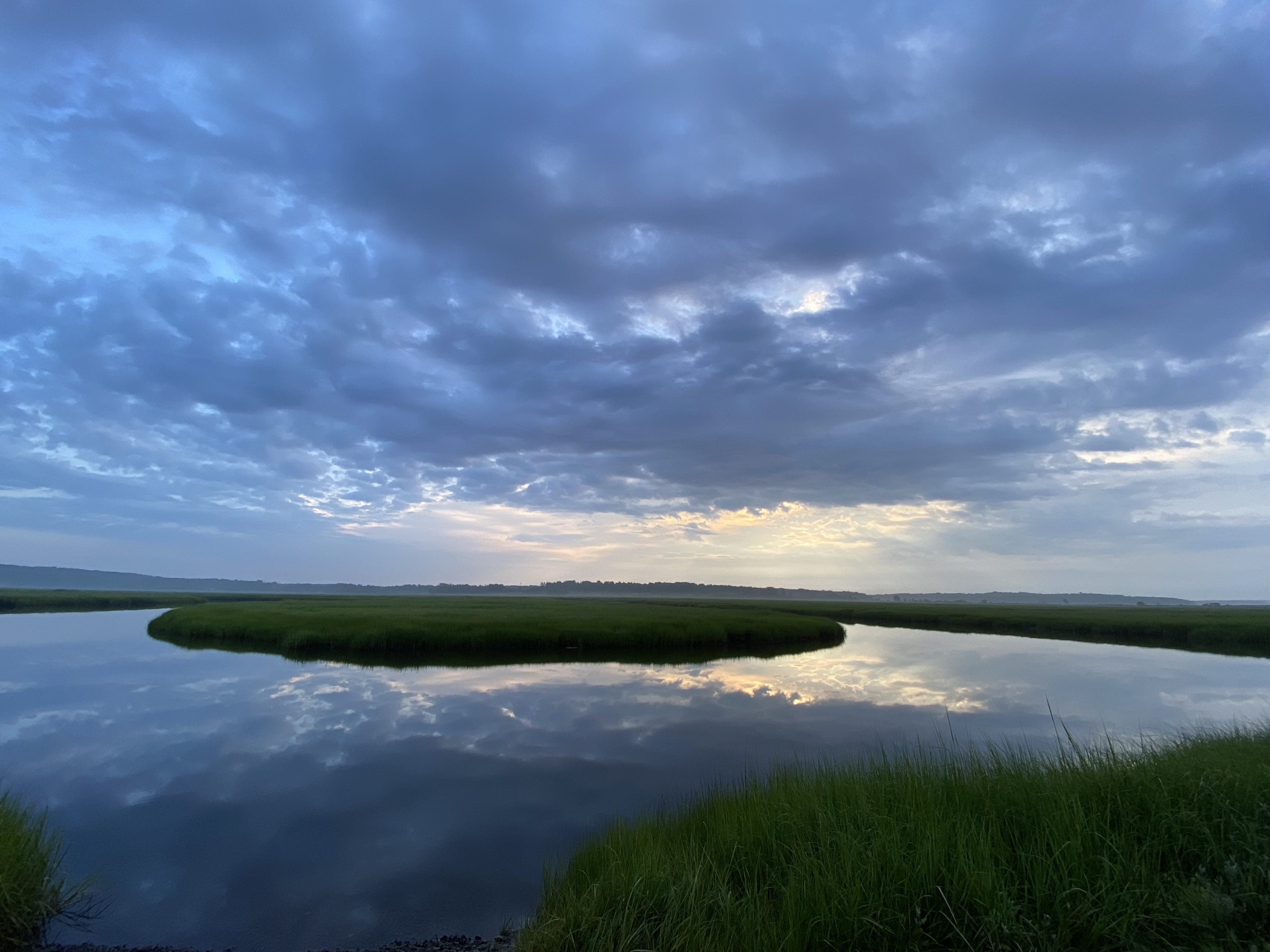 The alarm trills with bird song at 4:15 am. I can’t say I spring out of bed, but I’m somewhat closer to grin than groan. Today, I’m going to welcome the day at the marsh. I’m in happy anticipation of seeing egrets and herons, glossy ibis and who knows what else. I’ve been feeling the pull of the marsh for weeks now, but rainy (and snowy) and busy weekends have kept me away. Even as I rub the sleep away from my eyes, I feel my spirits lifting.